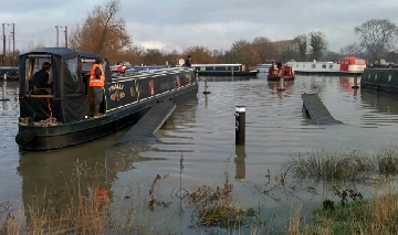 Luckily there were few boats trapped, and only one on the winter moorings on the towpath, though the resident boats further down towards the locks would have difficulty if the water rose much further.