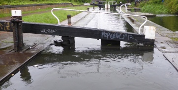 All the remaining locks were overflowing, with one bottom gate unable to be opened as when it was pushed it lifted then stuck, nothing like the usual 'something behind the gate' experience, but with fenders up we managed. This was the lock with the near collapsing top gate I reported a couple of year ago that had an inordinate amount of play, and other contributors too have remarked upon it. Even the beam is in terrible condition as can be seen, but nothing has been done, more important things for the Trust to spend its money on I expect.