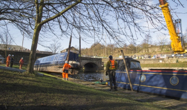 The crane that was brought in to remove the narrowboat that was 'beached' during the Calder & Hebble Navigation flood was also used to install the structure. The road bridge is a listed structure, with permission being needed to demolish before a new one can be built.