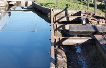Stop planks have been placed at the head of the lock to create a temporary weir.