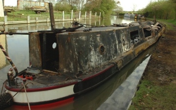 Though living on the 57ft narrowboat, he was not on it at the time, and though he ran out of the pub towards the flames, the fire people would not allow him near as there were gas bottles at view on the rear deck that could explode.