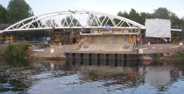 This is the replacement single span steel bridge replacing the old concrete structure that had to be demolished eight years ago. The refusal of Derby Angling Club to allow access coupled with the lack of cash caused most of the original delay.