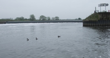 The two men were attempting to fish in the tidal section of the river just below the powerful weir, it what can only be described as a 'skimpy' boat, Alan Tilbury reports.