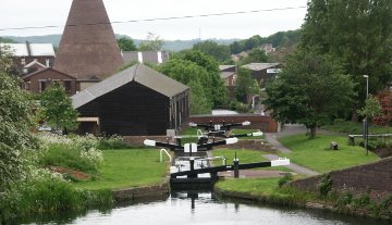 The very well known feature on the Stourbridge Flight is one of the now few remaining cone kilns of the historic former Stuart Crystal glassworks site, part of which will become a canalside housing estate, Alan Tilbury tells us.