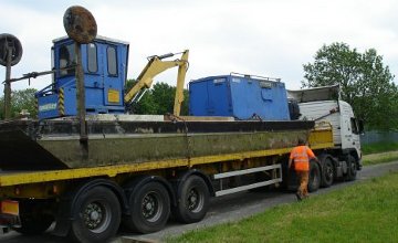 The result was the acquisition of the dredger Mudlark, that had been left neglected at Cotgrave on the canal for many years, and is seen here in Terry Pitman's photograph on the lorry that transported it to a section of the canal that has been restored.