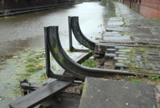 There were originally four timber supports, but now only one remains, and is liable to fall into the waterway unless something is done to safeguard what is part of the heritage of the town.