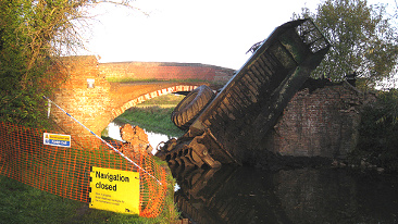 One case where the culprit was seen was at Stenson Bridge on the same canal, where the tractor and trailer breaking through the parapet just could not get away.