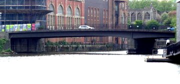A WOMAN was killed as a car containing five people crashed through St Phillips Bridge in Bristol into the Avon in the early hours of yesterday (Saturday) morning.