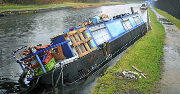 Its owner, Monica Bett, who lives on the boat, was away before Christmas, but came back to her boat to find it on its side, partly under water, Alan Tilbury tells us.