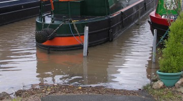 The photograph shows the spring (with yellow tape) that is secured to a jetty upright, that will hold our own boat from coming back on to the bank when the flood water that is over the jetty, recedes. Yet there are many boats in the marina with no such simple safety device...