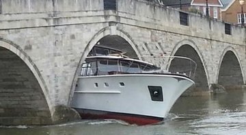 He obviously wasn't very good at calculating heights as the boat just would not go under Chertsey Bridge, becoming well and truly wedged, Alan Tilbury tells us.