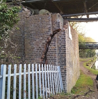 It was last week that supports of the bridge badly cracked making the whole structure unstable (Slough Arm closed) with part of the wall slipping into the canal.