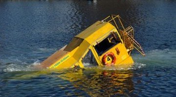 The boats are now grounded, as this is the second time one has sunk, (NbW—Duck that can't swim) with the last one sinking on the 1st April, though more slowly, with the boat managing to reach shore and all the passengers escaping, before it sank, as pictured. At this time too, the 'vehicles' were grounded whilst an inspection was carried out, but were allowed to resume their water cruises.