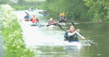 Among the changes to be seen along the canal this year the most significant is the finished canal below Redwith Bridge, where volunteers of the Shropshire Union Canal Society have spent the last few years relining a long-dry length which will soon be back in water. With the extra people taking part, the start at Newtown had to be put back to 8.30am where the Mayor of Newtown, Councillor Rina Clarke, started the cyclists. At Welshpool, where bicycles were exchanged for canoes, the proceedings were supervised by the Welshpool Town Mayor, Cllr John Meredith.