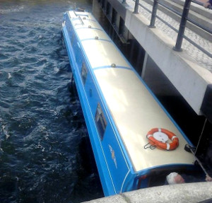 He was negotiating the docks in a strong wind, when it took over, spun the boat sideways and slammed it into a bridge supports where the boat was held firmly, Mick Fitzgibbons tells us.