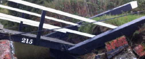 Contractors are at present taking equipment to the site to remove the broken bridge and clear the rubble out of the waterway.