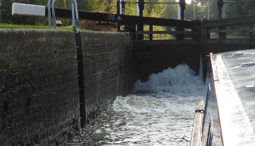 Travelling up through the locks was so much different from last time, when we had no problem whatsoever, but this time most had water pouring out of the bottom gates or rushing in at the top gates, with obviously two broken cills. The apertures of the top paddles were often crammed with debris, with Gees Lock particularly bad, and the lock took ages to fill. Only three of the paddles allowed water in, the furthest one being completely jammed with debris.