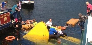 In all the sinkings passengers were aboard the boats and had to be rescued, in one event in Liverpool a narrowboat coming to the rescue and its crew pulling people out of the water, as pictured. One that sank in the Thames caught fire, pictured below, with its passengers jumping into the river to escape the flames. But very luckily no one was either drowned or seriously injured in any of the sinkings.