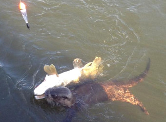 The picture, below, was taken by a fellow boater of an otter stealing (or attempting to steal) a plump pike, with Matt Edwards writing:
