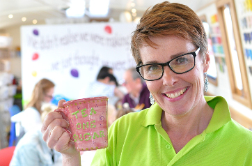 Robert tells us Lesley provides a craft space and help to the little ones (and adults) who design and paint their own ceramics. She has the wares and the paint and the materials.