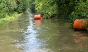 As I mentioned, it is quite a while since we were down this-a-way, but I well remember those great orange weir buoys fastened to an overhanging tree stump that needed cutting, and they are still there, with the tree stump still well in place. Trouble now is that one of them has 'escaped' and has been simply tied to a tree. I would have thought that leaving what must be expensive buoys tied up for the sake of a couple of minutes with a chain saw is not too good a way of looking after expenses.