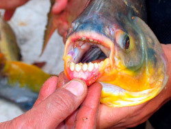 The pacu is a piranha-like fish usually found in South America, but grow to a weight of 44lbs, with the experts believing they have been kept by people thinking they are piranhas, but keep growing so are thrown out into fresh water such as rivers and canals.