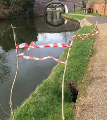 A Great Linford resident apparently contacted CaRT last week to report that a large crater had appeared in the bank side at Linford Wharf. The hole was about two feet deep and 18" in diameter.