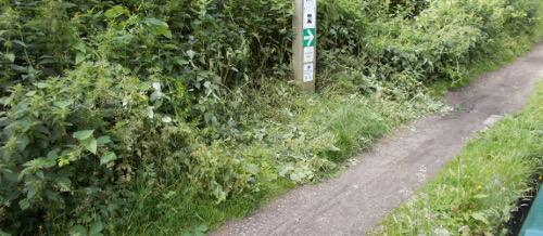 I cut back the undergrowth to show the true width of the towpath, disclosing at the same time the CaRT sign which was completely covered by the undergrowth, in this case the 'overgrowth'!