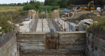 The photo taken last Saturday shows the progress in construction. Okay so the scaffolding now fills the lock but the mixer hasn't moved so you can see the height reached during the four weeks!