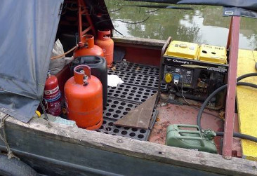 Boaters need to pay attention to exhaust gases, particularly petrol engine exhaust fumes if they can smell them in the boat's cabins because they can contain carbon monoxide (CO) in quantities that will harm or kill warns UK Parliamentarians and the BSS. The picture shows a generator, fuel, gas and even camping gas cylinders all in the bow of a narrowboat, all obviously in use. An accident waiting to happen.