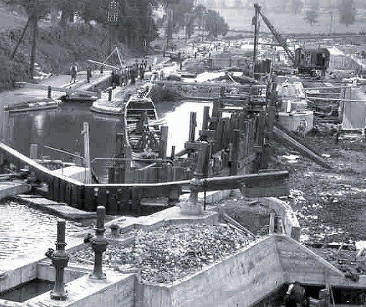 He obviously doesn't know what he is talking about, as it is well recorded and fairly well known to boaters that the original narrow locks were replaced with the present broad locks, this being achieved in the 30s, using the then modern methods, as the picture clearly shows.