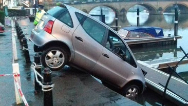 She had parked her car facing the river, but instead of reversing out of the parking bay had gone forward and was only saved from ending up in the river by a pontoon, that luckily had no boat moored, Alan tilbury tells us.