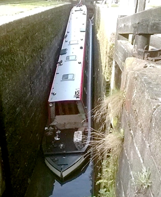 Though boats are sunk all over the place, most are sunk in locks, and with the exception of those caught by the protrusion below the water level of Bank Newton Lock (40) on the Leeds & Liverpool Canal, all have had their stern caught on the cill.
