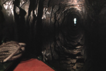 It is the tunnel that however restricts the use of the waterway as every boat has to have a 'chaperone', the best known of them being 'Fred' who gives a knowledgeable running commentary through the whole distance. The problem is that this has been restricting the number of boats allowed through the tunnel to no more than nine a week. And of course many boaters quell at the thought of the 84 locks over a distance of under 20 miles. The unusual photograph above shows our boat nearing the western entrance of Standedge Tunnel in 2011.
