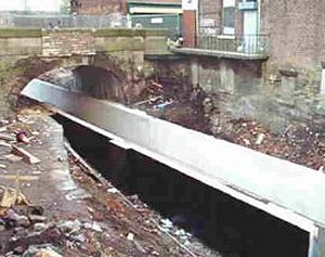 The picture below shows the waterway being installed through Stalybridge.